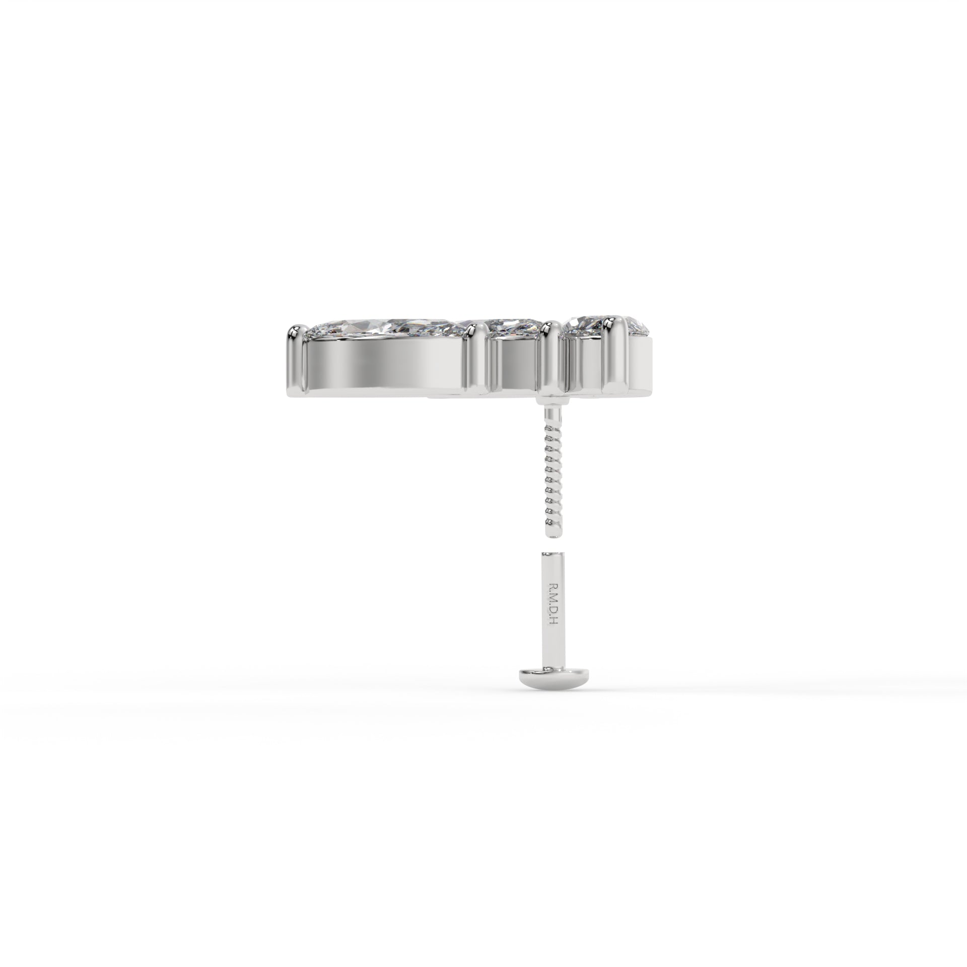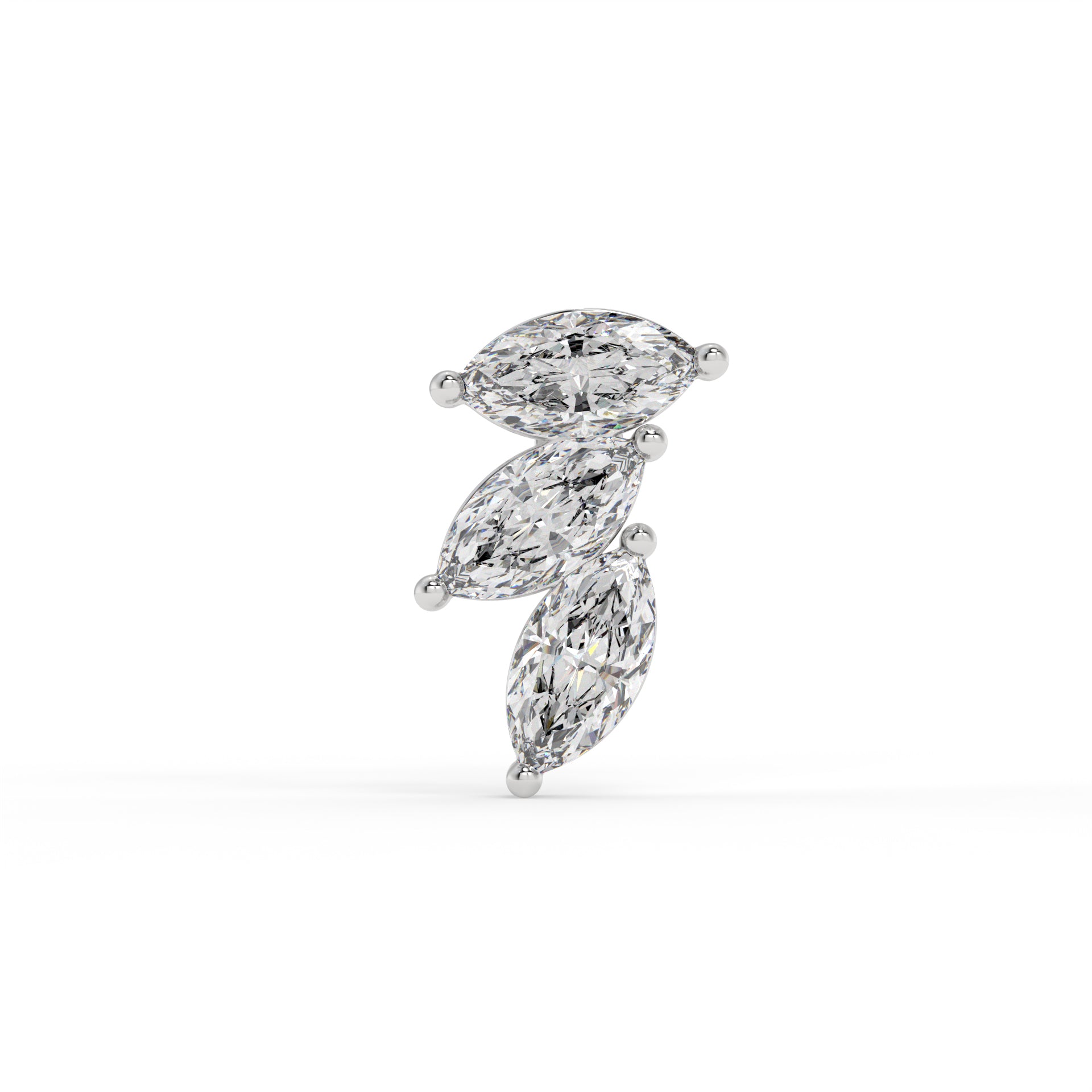 Piercing 3 marquise courbé,OR BLANC 9K.